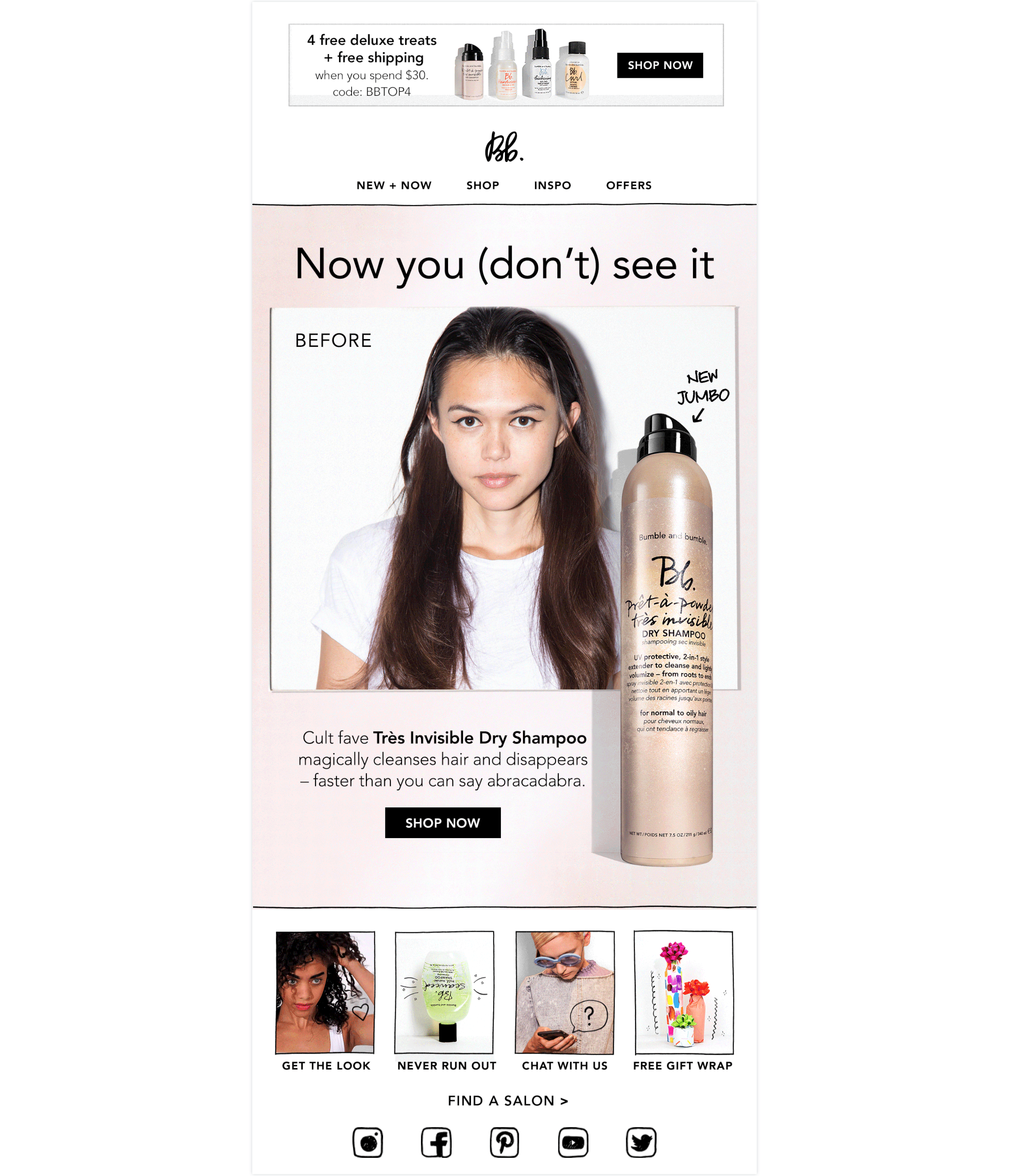 How-to and benefit focused email for Hairdresser's Invisible Oil Primer